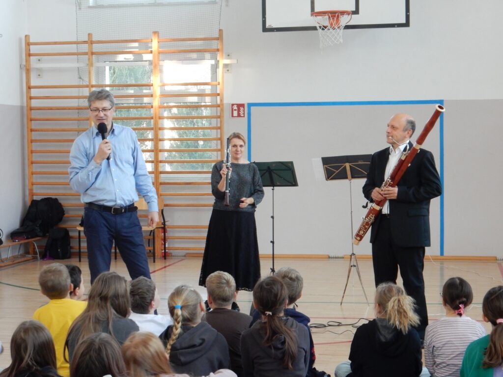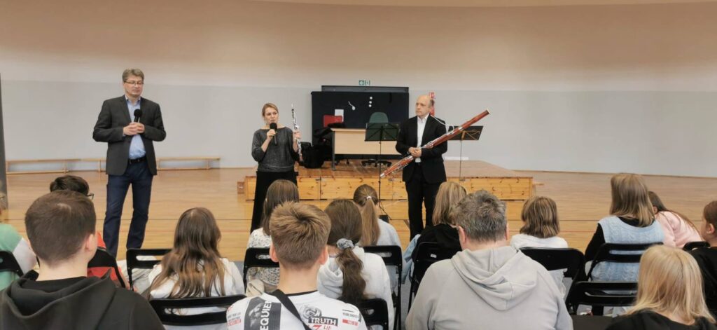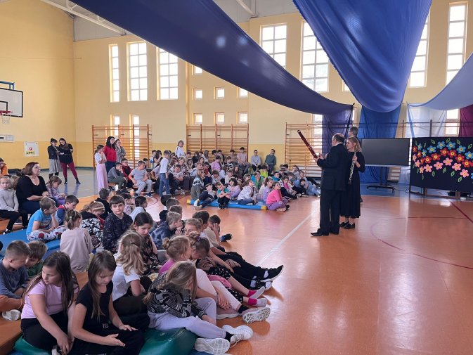 Podczas audycji pt. „Charakterystyczne rytmy w tańcu” uczniowie wysłuchali melodii polskich tańców: kujawiaka, oberka, mazura, poloneza i krakowiaka w mistrzowskim wykonaniu Artystów z Bydgoszczy i Lublina.